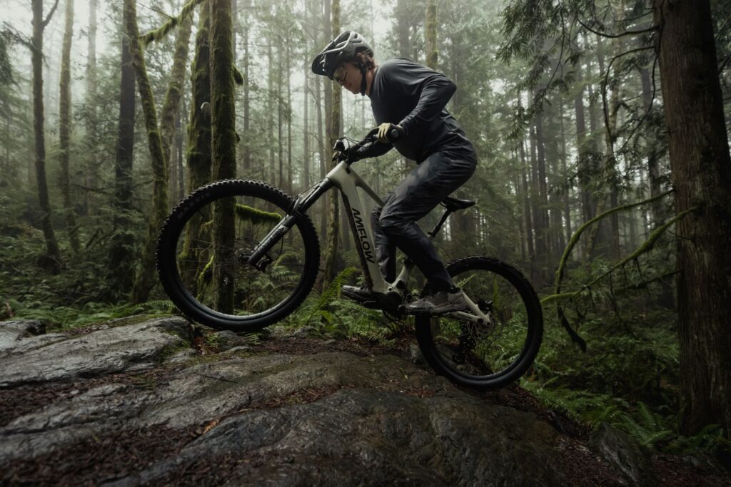 Riders still have access to adjustable head angle, bottom bracket height and chainstay length settings, allowing the bike’s handling to be tuned for stability, agility or climbing efficiency depending on terrain. Like the PX, the PR can be configured as either a full 29” setup or a mullet configuration, reinforcing Amflow’s focus on adaptability rather than fixed ride characteristics.