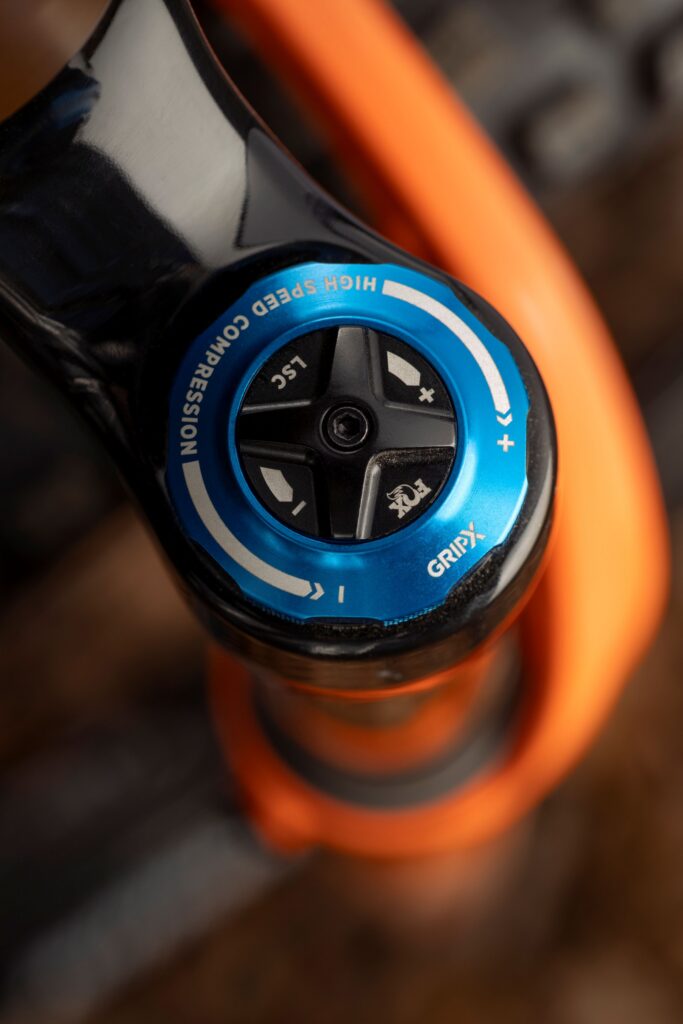 The Grip X is the ‘in betweener’ – a balanced ‘trail performance’ damper that offers the best of both worlds – a reduced system weight to keen the front end light for climbing and preloading, and intuitive high speed compression and rebound adjustment. Unlike the Grip SL damper that’s all about a firm pedalling platform, the Grip X removes the Firm mode, Fox stating that most trail riders weren’t prioritising this feature.